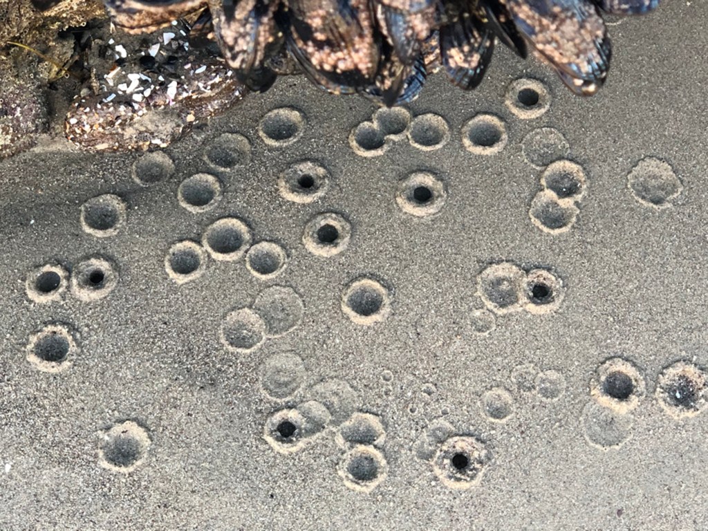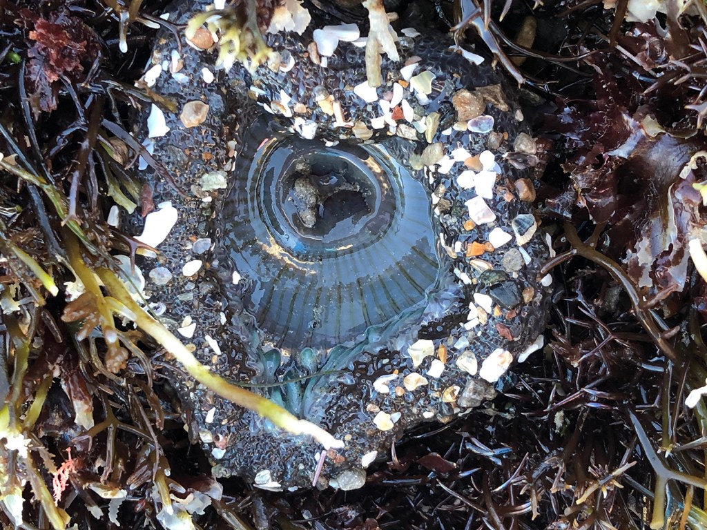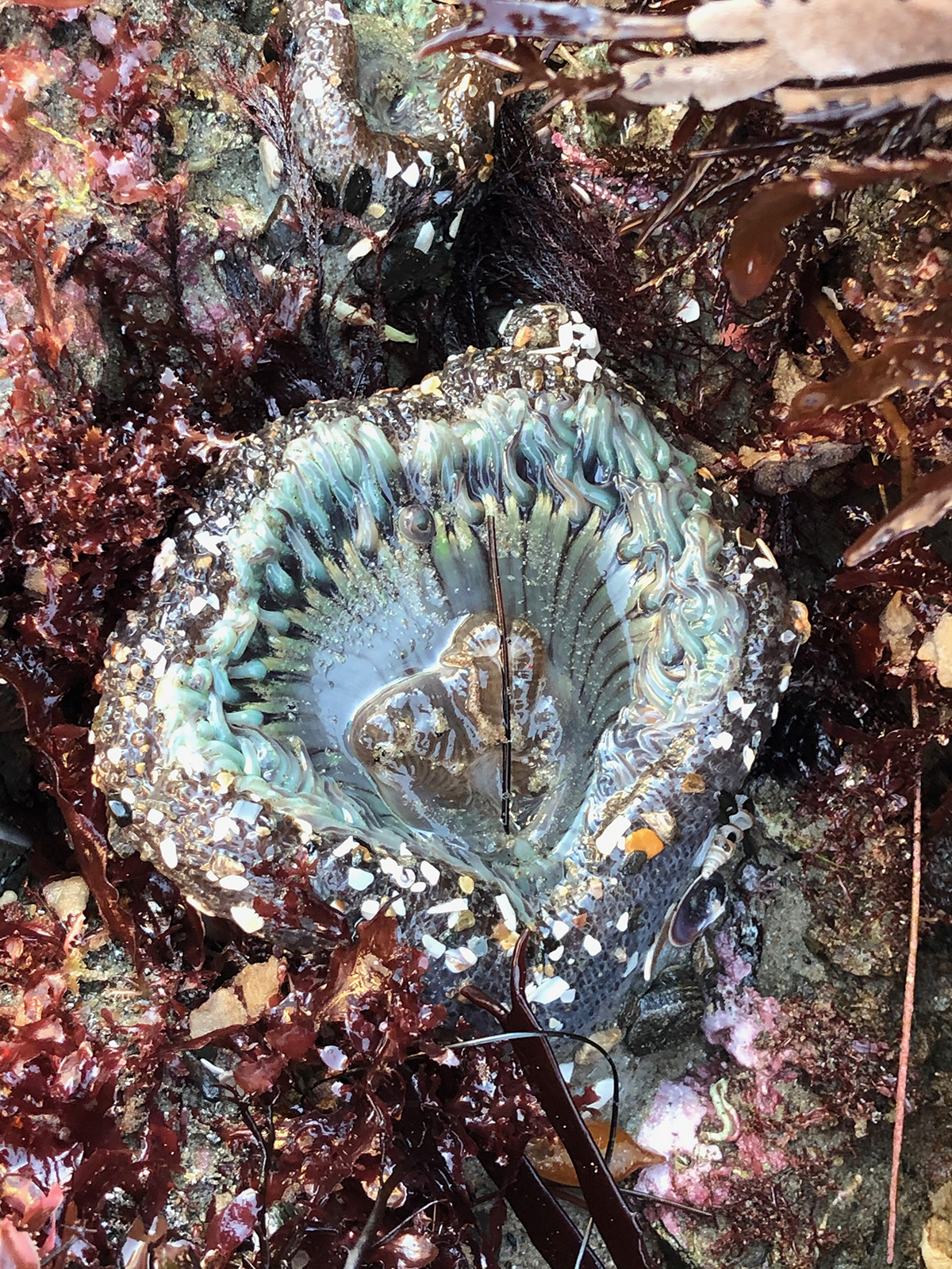 Amazing to see anemones with soft sticky outsides that are sludge-free. (Perhaps these critters live in deeper water than the sludged ones?) (I’m making that up.):