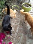 One of the grown cats, Luna, tolerates the youngsters but avoids them because whenever they spot him, all three converge to incessantly sniff him and follow him and try to get him to touch noses with them.