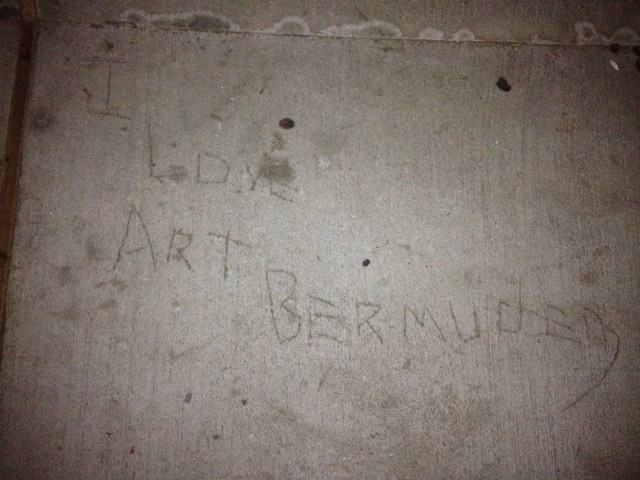 Twice a week, the exercise class I have attended for years meets under a certain freeway overpass. The other day, I discovered a note scrawled in the concrete. I had never noticed it before. Now, I have a long history of not noticing stuff, but when I asked around, nobody else had previously noticed it either. Perhaps we are all oblivious, or perhaps the message is an indication of intense longing, sufficient to carve long-dry concrete.